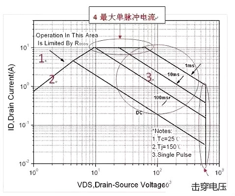 (1)確保在最差條件下,MOSFET的所有功率限制條件均在SOA限制線以內(nèi)。