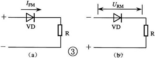 [3]、晶體二極管的主要參數有:(1) 最大整流電流IFMFM,是指允許正向通過PN結的最大平均電流(圖③a)。使用中實際工作電流應小于IFM,否則將損壞二極管。(2) 最大反向電壓URM,是指反向加在二極管兩端而不致引起PN結擊穿的最大電壓(圖③b)。使用中應選用URM大于實際工作電壓2倍以上的二極管。(3) 檢波或高頻整流二極管的最高工作頻率fM,至少應2倍于電路實際工作頻率。(4) 穩(wěn)壓二極管的穩(wěn)定電壓UZ值應符合電路要求。